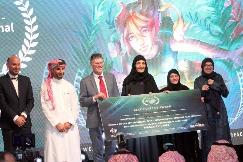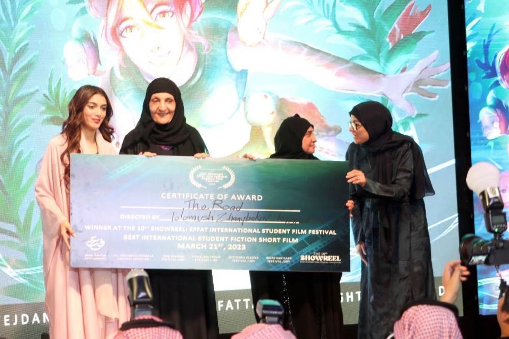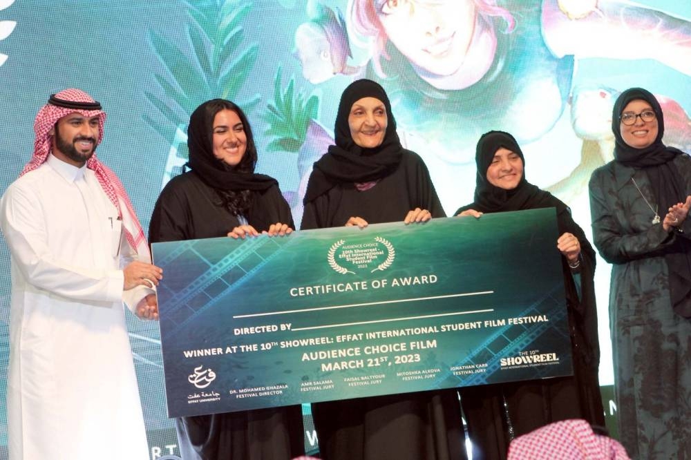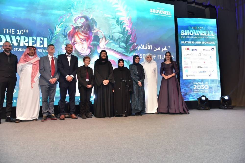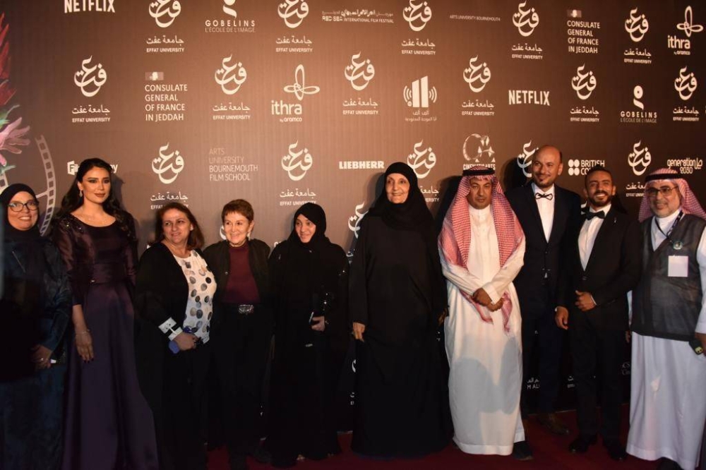 أقامت جامعة «عفت» بجدة مساء أمس (الثلاثاء 21 مارس 2023م) الحفل الختامي لمهرجان «عفت» لأفلام الطلبة الدولي في دورته العاشرة للمهرجان تحت شعار «بحر من الأفلام» في قاعة «عفت» الرئیسیة بالجامعة، بحضور ورعاية نائب رئيس مجلس الأمناء والمشرف العام على جامعة «عفت» الأميرة لولوة الفيصل، وحضور رئيسة الجامعة الدكتورة هيفاء جمل الليل، ووكيلة الجامعة للشؤون الأكاديمية د. ميرفت شومان، وعميدة كلية العمارة بالجامعة د. أسماء إبراهيم، ورئيس مدرسة السينما بالجامعة د. محمد غزالة، وحضور المخرجات الشابات، وحشد كبير من طالبات وطلّاب جامعة «عفت» والمهتمين والمهتمات بصناعة السينما وشخصيات فنية عربية وأجنبية من المشاركين والمهتمين بالحركة السينمائية السعودية تحديداً والسينما الشبابية بشكل خاص، وكوكبة من النجوم وضيوف شرف المهرجان.