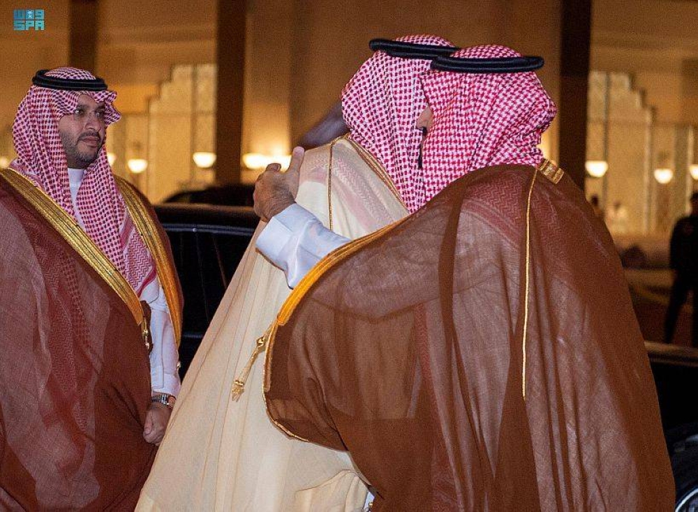 وقد غادر بمعية ولي العهد، وزير الدولة عضو مجلس الوزراء الأمير تركي بن محمد بن فهد بن عبدالعزيز، ووزير الرياضة الأمير عبدالعزيز بن تركي الفيصل، والأمير سعود بن سلمان بن عبدالعزيز، ووزير الدفاع الأمير خالد بن سلمان بن عبدالعزيز، وعضو هيئة كبار العلماء المستشار في الديوان الملكي الشيخ الدكتور سعد بن ناصر الشثري، وأصحاب المعالي الوزراء.