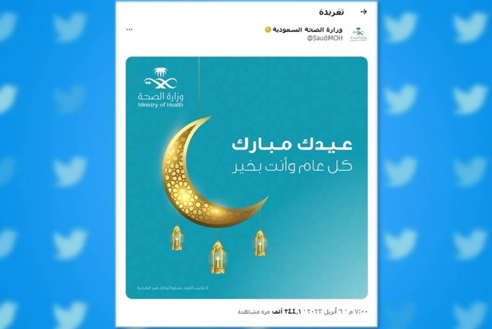فاجأت وزارة الصحة متابعيها عبر حسابها الرسمي في منصة «تويتر» بملصق للعيد السعيد، مهنئة إياهم بقولها: «عيدك مبارك.. كل عام وأنت بخير».
