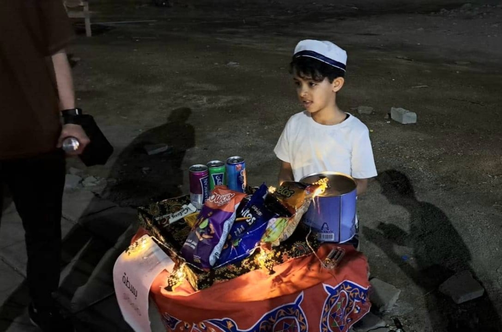 يقف الطفل تميم عبدالله باشنيني ابن الأعوام الستة شامخاً أمام بسطته متوشحاً بالزي التراثي الحجازي، مردداً العبارات والأهازيج التي تستعطف الزبائن ومرتادي بسطته محدودة الأنواع، بغية تحقيق مصدر دخل إضافي خلال هذا الشهر في ظل الانتعاش الذي تشهده البسطات الرمضانية طوال شهر رمضان المبارك.