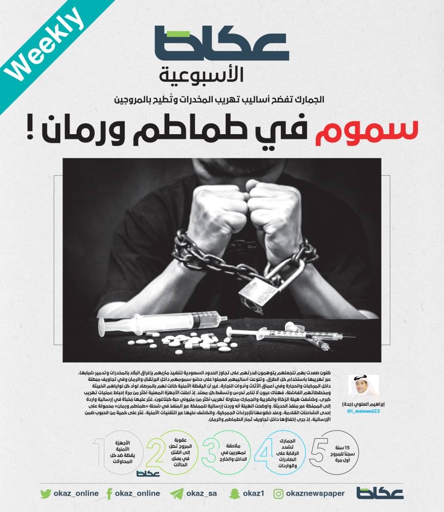 ظنون صعدت بهم لتجعلهم يتوهمون قدرتهم على تجاوز الحدود السعودية لتنفيذ مآربهم بإغراق البلاد بالمخدرات وتدمير شبابها، عبر تهريبها باستخدام كل الطرق، وتنوعت أساليبهم فعملوا على حشو سمومهم داخل البرتقال والرمان وفي تجاويف مبطنة داخل المركبات والحجارة وفي أعماق الأثاث وأدوات النجارة، غير أن اليقظة الأمنية كانت لهم بالمرصاد لوأد كل نواياهم الخبيثة ومخططاتهم الفاشلة، فهناك عيون لا تنام تحرس وتسقط كل معتد. إذ أعلنت الأجهزة المعنية أكثر من مرة إحباط عمليات تهريب كبرى، وكشفت هيئة الزكاة والضريبة والجمارك محاولة تهريب أكثر من مليوني حبة كبتاغون، عُثِر عليها مُخبأة في إرسالية واردة إلى المملكة عبر منفذ الحديثة. وأوضحت الهيئة أنه وردت إرسالية للمملكة عبر المنفذ في شحنة «طماطم ورمان» محمولة على إحدى الشاحنات القادمة، وعند خضوعها للإجراءات الجمركية، والكشف عليها عبر التقنيات الأمنية، عُثر على كمية من الحبوب ضمن الإرسالية، إذ جرى إخفاؤها داخل تجاويف ثمار الطماطم والرمان.