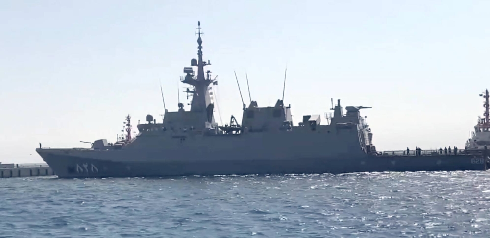 إحدى السفن السعودية التي ساهمت في إجلاء مواطنين سعوديين ورعايا من 12 دولة من السودان أمس (السبت).