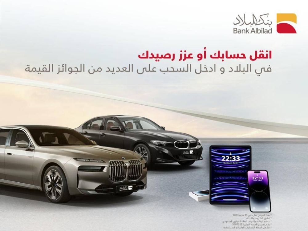 في إطار مواكبته للعروض الحصرية التي يقدّمها لعملائه الحاليين والجُدُد، أعلن بنك البلاد حملة العروض الحصرية للحسابات، داعياً إلى اكتشاف الفخامة وأرقى معايير الخدمة، والحصول على فرصة الفوز بالجائزة الكبرى سيارة BMW الفئة السابعة، ضمن الحملة التي أطلقها البنك أخيرا.