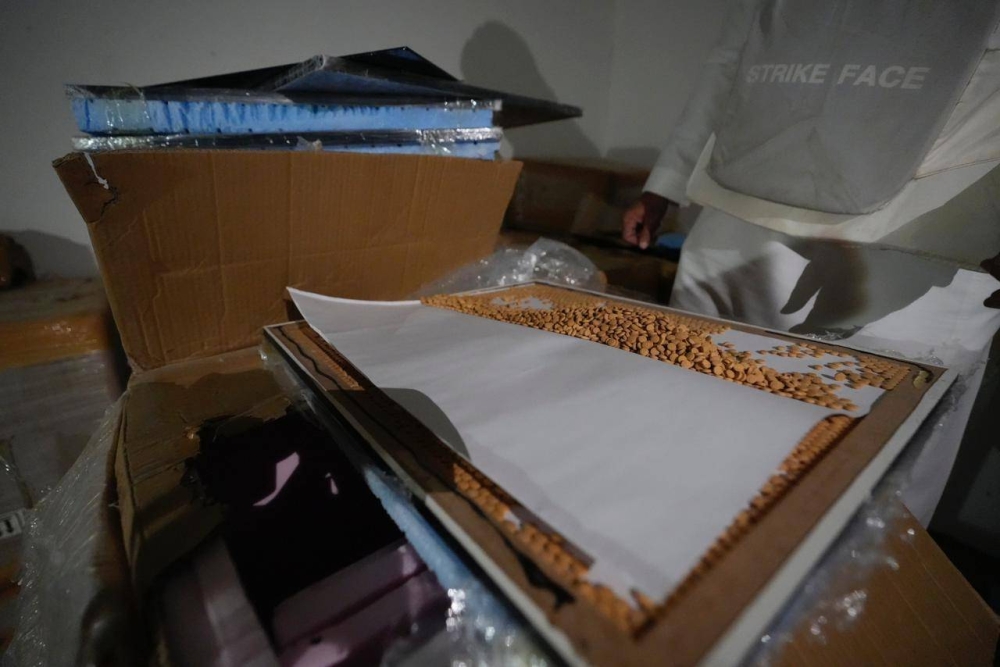 أسفرت المتابعة الأمنية لشبكات تهريب وترويج المخدرات التي تستهدف أمن المملكة وشبابها عن رصد نشاط إجرامي لاستقبال وترويج المخدرات في استراحة بمحافظة المزاحمية بمنطقة الرياض، حسب ما صرح المتحدث باسم الأمن العام، إذ تمت مداهمتها والقبض على 7 أشخاص، (3 مقيمين من الجنسيات المصرية والسورية والبنغلاديشية ومقيمان من الجنسية اليمنية ومواطنان)، بحوزتهم (1,266,000) قرص من مادة الإمفيتامين المخدر مخبأة باحترافية داخل ألواح زجاجية.