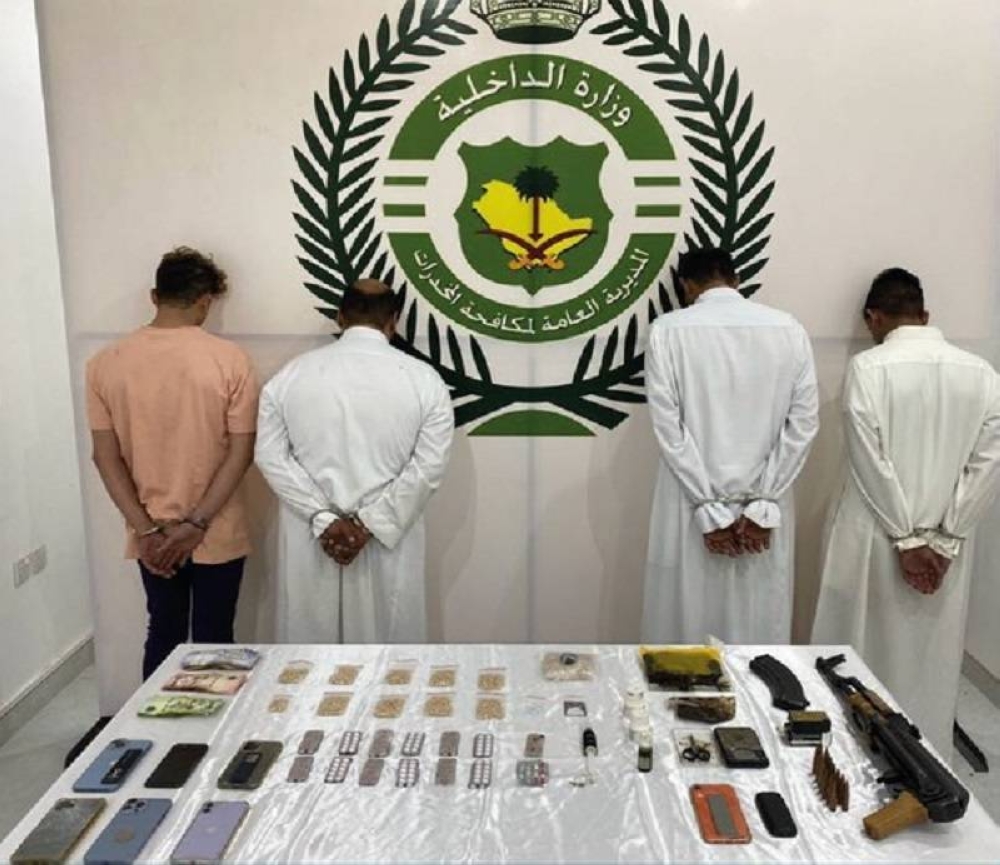 قبضت المديرية العامة لمكافحة المخدرات على 4 مواطنين بمنطقة القصيم لترويجهم مادة الحشيش المخدر ومادة الأمفيتامين المخدر ومادة الميثامفيتامين المخدر (الشبو) وأقراصًا خاضعةً لتنظيم التداول الطبي، وضبط بحوزتهم سلاح ناري وذخيرة حية ومبلغ مالي، وجرى إيقافهم واتخاذ الإجراءات النظامية بحقهم وإحالتهم إلى النيابة العامة.