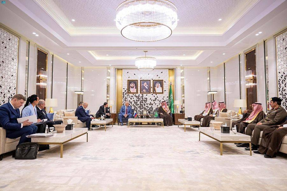 عقد وزير الداخلية الأمير عبدالعزيز بن سعود بن نايف بن عبدالعزيز، الإثنين، جلسة مباحثات رسمية مع وزير الداخلية بجمهورية روسيا الاتحادية الفريق أول فلاديمير كولوكولتسيف، بديوان وزارة الداخلية في الرياض.