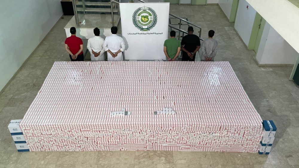 صرَّح المتحدث باسم المديرية العامة لمكافحة المخدرات الرائد مروان الحازمي بأن المتابعة الأمنية لشبكات تهريب وترويج المخدرات التي تستهدف أمن المملكة وشبابها، أسفرت عن إحباط محاولة ترويج (4094950) قرصاً خاضعاً لتنظيم التداول الطبي، والقبض على مروجيها بمنطقة الرياض، وهم (6) أشخاص، (3) مقيمين من الجنسية المصرية، ومقيمان من الجنسيتين السودانية واليمنية، ومواطن، وجرى إيقاف المتهمين واتخاذ الإجراءات النظامية الأولية بحقهم وإحالتهم إلى النيابة العامة.