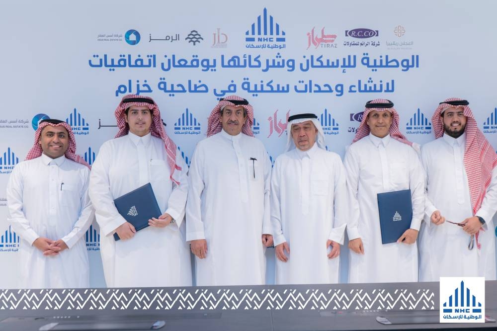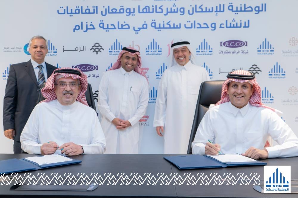وقعّت الوطنية للإسكان 6 اتفاقيات شراكة بالتعاون مع عدد من المطورين العقاريين لتطوير وتنفيذ أكثر من 2300 شقة سكنية، بأسعار تبدأ من 250 ألف ريال بعد الدعم في ضاحية خزام بمدينة الرياض، والتي تأتي بمساحات تتراوح ما بين 125 - 299 مترا مربعا، وذلك بحضور نائب وزير الشؤون البلدية والقروية والإسكان رئيس مجلس إدارة الشركة الوطنية للإسكان المهندس إيهاب الحشاني والرئيس التنفيذي للشركة الوطنية للإسكان محمد بن صالح البطي.