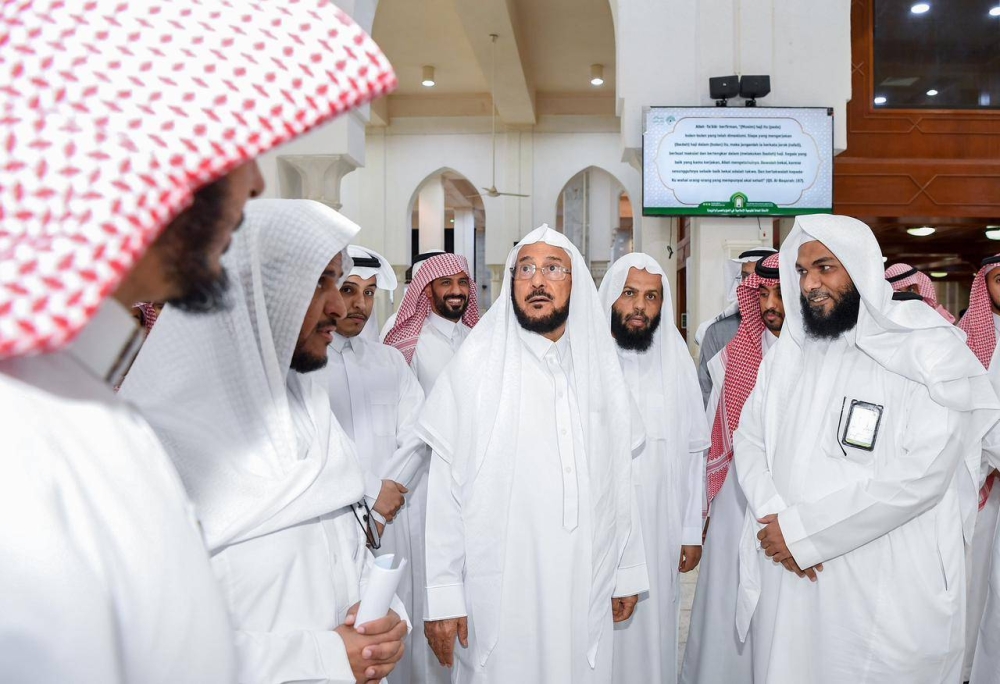 أكد وزير الشؤون الإسلامية والدعوة والإرشاد رئيس اللجنة العليا لأعمال الوزارة في الحج والعمرة والزيارة الشيخ الدكتور عبداللطيف بن عبدالعزيز آل الشيخ، على أن الوزارة لن تتسامح مع كل من يقصر بخدمة ضيوف الرحمن سواءً من منسوبيها أو الشركات التي يتم التعاقد معها، لافتاً إلى تكثيف عمل الفرق الرقابية على مدار الساعة خلال موسم الحج وحتى مغادرة آخر حاج للأراضي المقدسة، جاء ذلك خلال جولته التفقدية التي قام بها للوقوف على اكتمال خدمات مرافق الوزارة في منطقة المشاعر المقدسة، وآخر الاستعدادات والتجهيزات لاستقبال ضيوف الرحمن، في إطار رسالة الوزارة في تقديم أعلى مستويات الخدمة لهم، تماشياً مع توجيهات القيادة الرشيدة، حيث دشن عقود الصيانة والتشغيل لمساجد وجوامع مكة المكرمة ومنطقة المشاعر المقدسة وعدد من المواقيت ومرافق الوزارة الخدمية بمشعر منى بمبلغ إجمالي تجاوز 356 مليون ريال تزامنا مع بدء موسم الحج الحالي. وبدأ آل الشيخ جولته بالوقوف على مسجد نمرة بمشعر عرفات ومقر الوزارة وكبائن الدعاة، كما وقف على جاهزية مسجد المشعر الحرام بمزدلفة لاستقبال الحجاج، إثر ذلك تجول بمسجد الخيف بمشعر منى واطلع على أبرز المشاريع المنفذة فيه واطمأن على جاهزيته لاستقبال ضيوف الرحمن خلال موسم الحج لهذا العام.