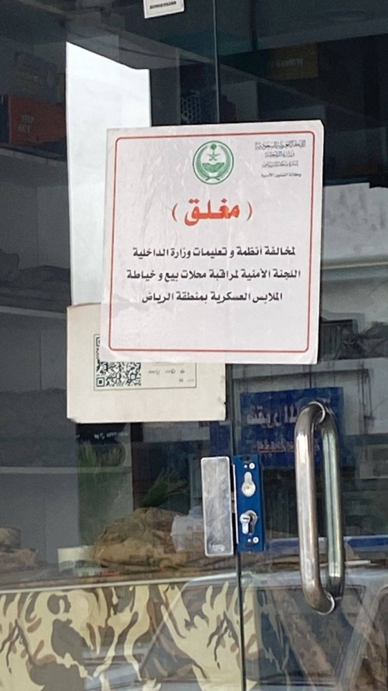 ضبطت اللجنة الأمنية لمراقبة محلات بيع وخياطة الملابس العسكرية بمحافظة الخرج التابعة لمنطقة الرياض 3000 رتبة ونوط عسكري، وصادرت 60 بدلة عسكرية بمحلات مخالفة، كما أغلقت 3 محلات تجارية مخالفة لأنظمة وتعليمات وزارة الداخلية.