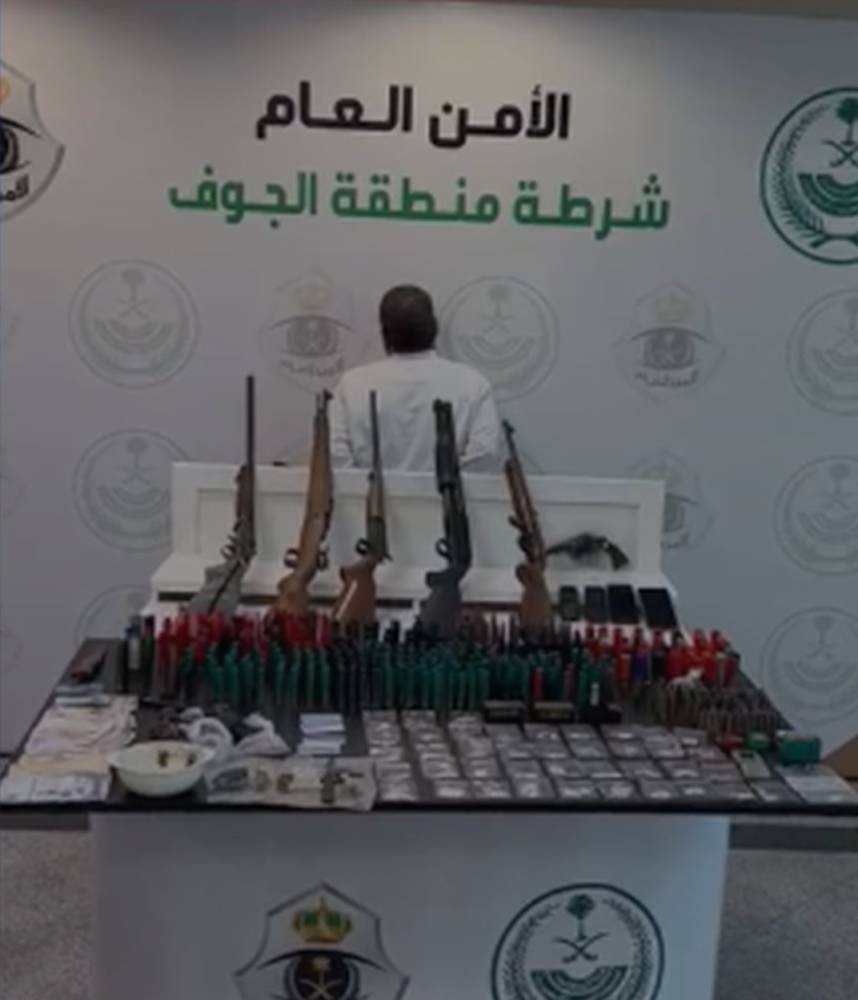 قبضت شرطة منطقة الجوف على مواطن لترويجه مادة الإمفيتامين المخدر ومادة الحشيش المخدر، وضبط بحوزته على أسلحة نارية وذخيرة حية، وهواتف متنقلة، ومبلغ مالي، وجرى إيقافه واتخاذ الإجراءات النظامية بحقه وإحالته إلى جهة الاختصاص.