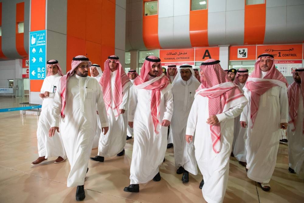 وقف نائب أمير منطقة مكة المكرمة الأمير بدر بن سلطان ميدانياً على جاهزية المرافق في صالة الحجاج بمطار الملك عبدالعزيز الدولي، متفقداً مجمع صالات الحج والعمرة ومواقع الجهات التي تعمل على تقديم خدماتها لضيوف الرحمن القادمين لأداء فريضة الحج، ورافقه وزير الحج والعمرة الدكتور عبدالفتاح المشاط ومدير عام الجوازات الفريق سليمان اليحيا ومدير الأمن العام الفريق محمد البسامي وعدد من مسؤولي الجهات ذات العلاقة بخدمة ضيوف الرحمن.