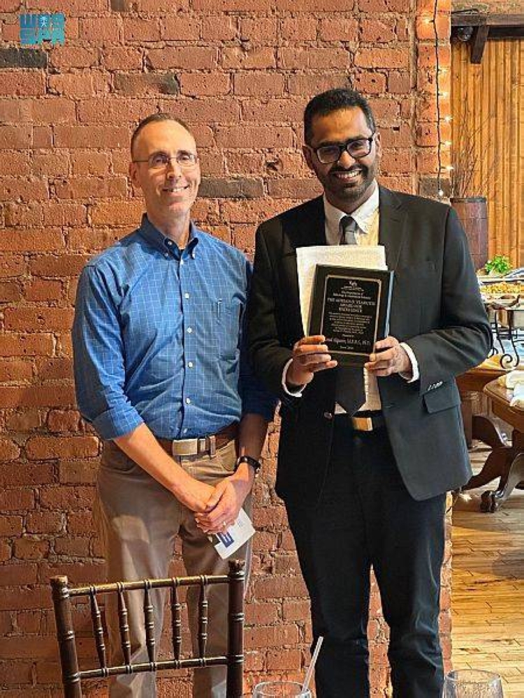 نال المبتعث السعودي من جامعة جازان عماد يحيى القاسم جائزة جامعة ولاية نيويورك الأمريكية لأفضل طبيب متدرب وباحث على المستوى الأكاديمي والمسؤولية الاجتماعية.