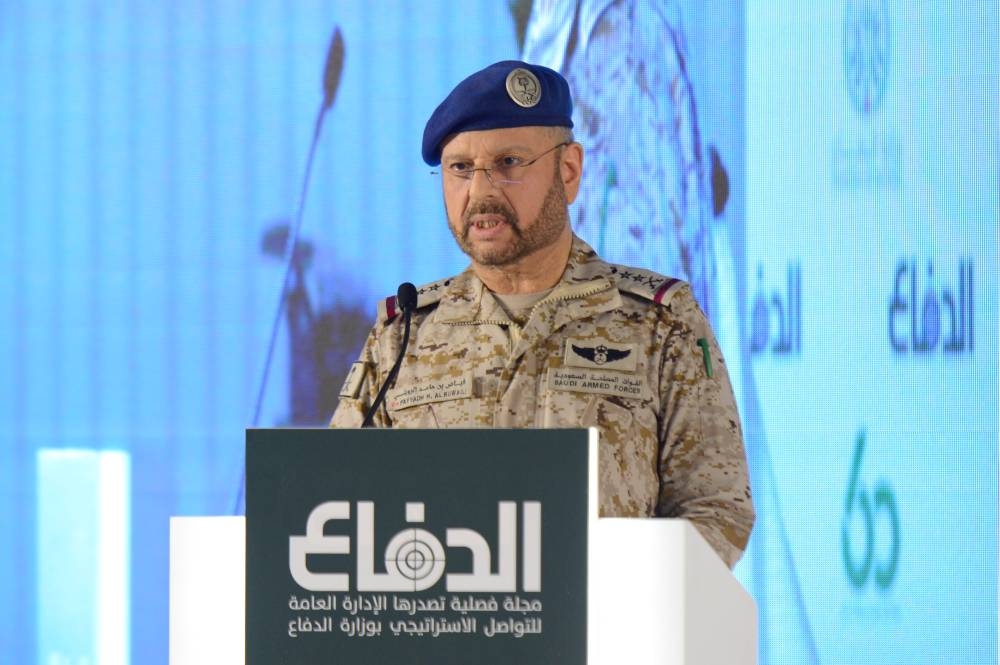 وألقى رئيس هيئة الأركان العامة الفريق الأول الركن فياض بن حامد الرويلي كلمة بهذه المناسبة، ثمَّن فيها جهود القائمين على «مجلة الدفاع»، مستذكرًا أدوار من سبق أن عملوا بها، من مشرفين ورؤساء تحرير طوال تاريخها، وما قدموه خلال هذه المسيرة من إنجازات أسهمت في وصولها إلى موقعها الحالي. وأكد أهمية المجلة كمرجع ومنبر للأبحاث، والدراسات الدفاعية والمواضيع الرصينة والمحكمة.