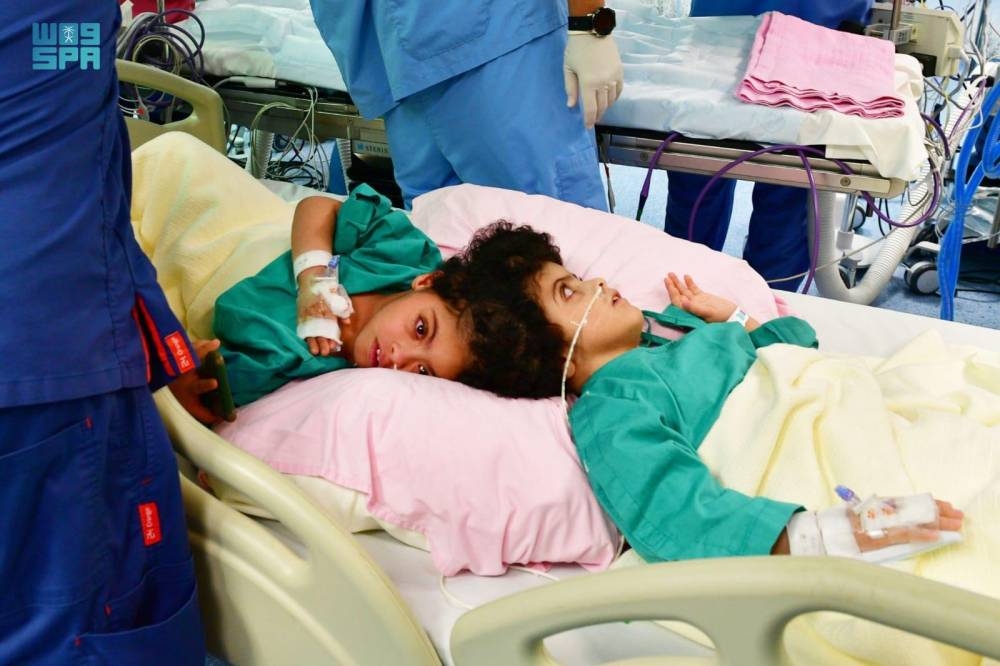 وأوضح المستشار بالديوان الملكي المشرف العام على مركز الملك سلمان للإغاثة والأعمال الإنسانية رئيس الفريق الطبي والجراحي في عمليات فصل التوائم السيامية الدكتور عبدالله بن عبدالعزيز الربيعة، أن التوأم وصلا إلى المملكة بتاريخ 23 نوفمبر 2021م، وقام الفريق الطبي بإجراء الفحوصات الطبية الدقيقة التي أوضحت اشتراك التوأم بالمخ والجيوب الوريدية حول المخ، مشيراً إلى أن الفريق الجراحي بقيادة الدكتور معتصم الزعبي من جراحة الأعصاب للأطفال، والدكتور محمد الفوزان من جراحة التجميل، والدكتور نزار الزغيبي من تخدير الأطفال، قرروا إجراء عملية الفصل على أربع عمليات منفصلة بينهما أسابيع عدة إلى أشهر لفصل المخ والجيوب الوريدية المشتركة، إضافة إلى ثلاث عمليات لتمديد الجلد من قبل جراحة التجميل، واستغرقت العمليات الأربع للفصل نحو 57 ساعة منها 17 ساعة لهذه العملية الأخيرة.