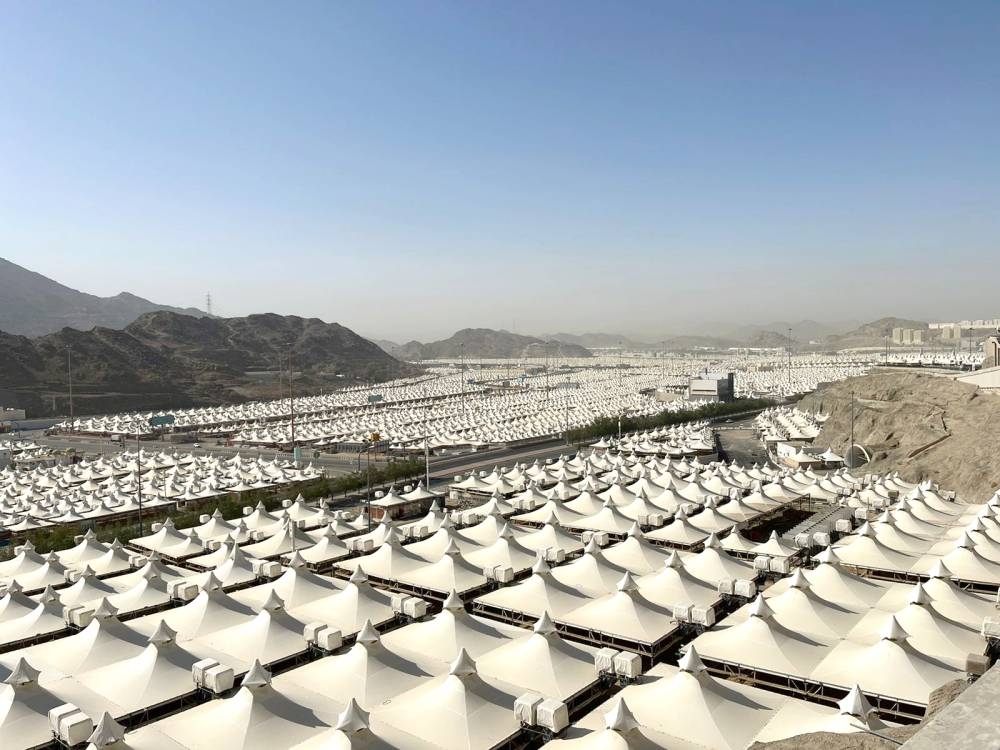 مخيمات مجهزة لاستقبال الحجاج بالمشاعر المقدسة. (عكاظ)