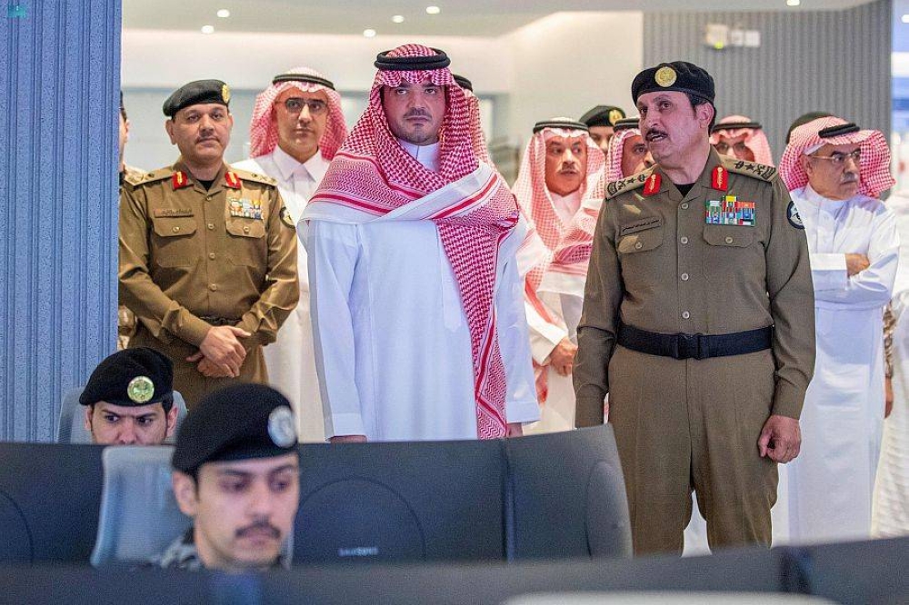وقف وزير الداخلية رئيس لجنة الحج العليا الأمير عبدالعزيز بن سعود بن نايف، (الإثنين)، على سير العمل في مركز القيادة والسيطرة لأمن الحج بمقر الأمن العام في مشعر منى.