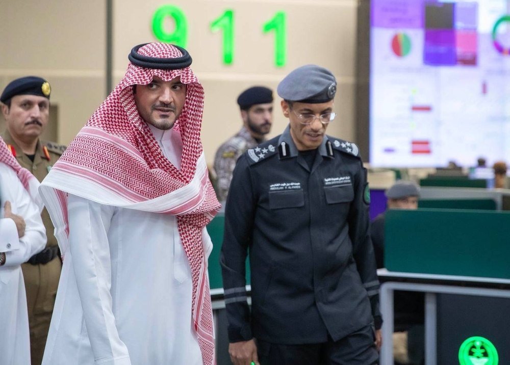 تابع وزير الداخلية رئيس لجنة الحج العليا الأمير عبدالعزيز بن سعود بن نايف بن عبدالعزيز، سير العمل في مركز العمليات الأمنية الموحدة (911) بمكة المكرمة.