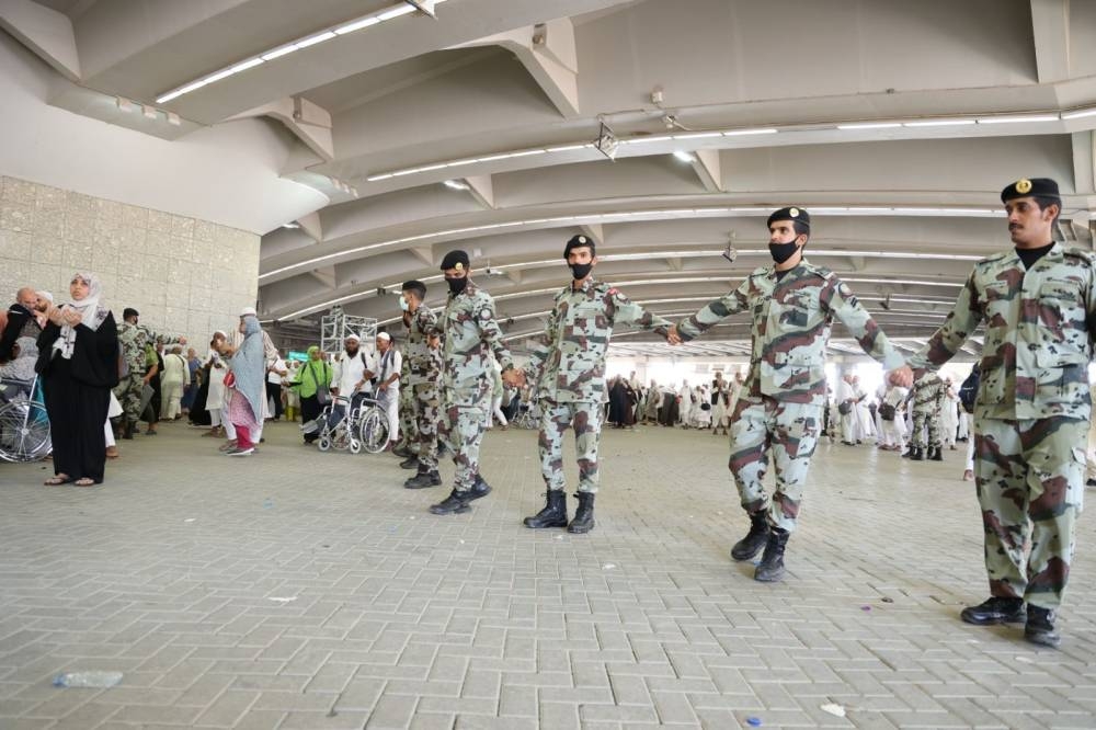 وقام رجال الأمن المسؤولون عن تنظيم الحشود بدور بارز في عملية تيسير حركة ضيوف الرحمن في منشأة الجمرات وخصصت مسارات متعددة لتوزيع الحشود على الأدوار المتعددة لمنشأة الجمرات لإتمام الرمي بكل يسر وسهولة.