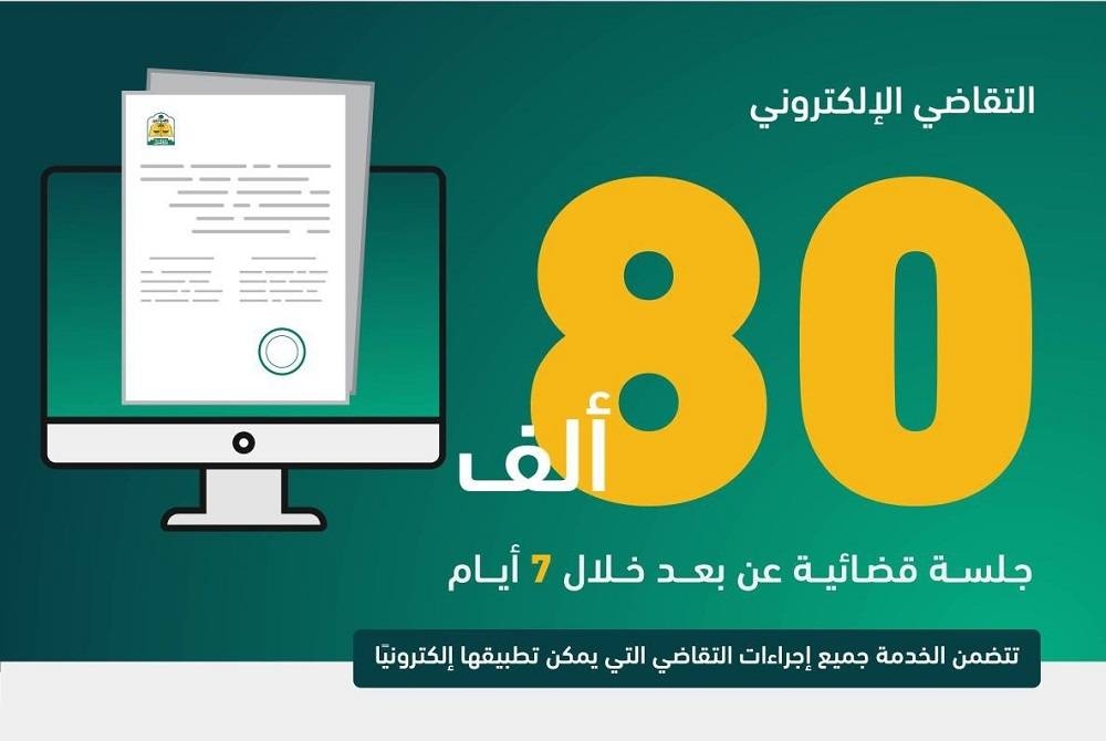عقدت محاكم السعودية التابعة لوزارة العدل، أكثر من 80 ألف جلسة قضائية عن بعد خلال الأيام السبعة الماضية، من خلال خدمة «التقاضي الإلكتروني».