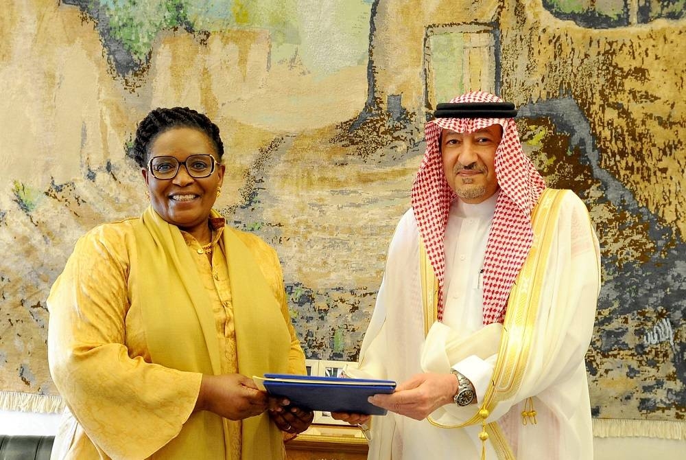 تسلم الرسالة نائب وزير الخارجية المهندس وليد بن عبدالكريم الخريجي خلال استقباله في الرياض اليوم (الجمعة) وزيرة الخارجية والتعاون الدولي لمملكة إسواتيني ثولي دلادلا.