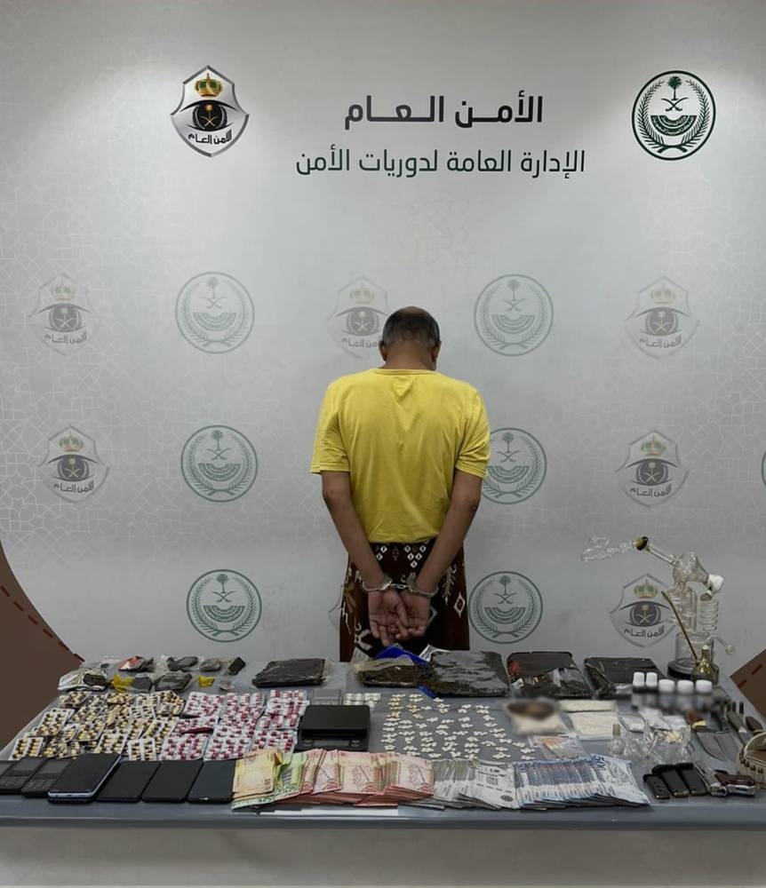 قبضت دوريات الأمن بمنطقة مكة المكرمة على مواطن لاتخاذه منزلًا لترويج (3.4) كيلوغرام من مادة الحشيش المخدر، ومادة الميثامفيتامين المخدر (الشبو)، ومادة الإمفيتامين المخدر، وأقراصا خاضعة لتنظيم التداول الطبي، وضبطت بحوزته أسلحة بيضاء وسلاح ناري وذخيرة حية وهواتف متنقلة ومبلغ مالي، وجرى إيقافه واتخاذ الإجراءات النظامية بحقه وإحالته إلى جهة الاختصاص.