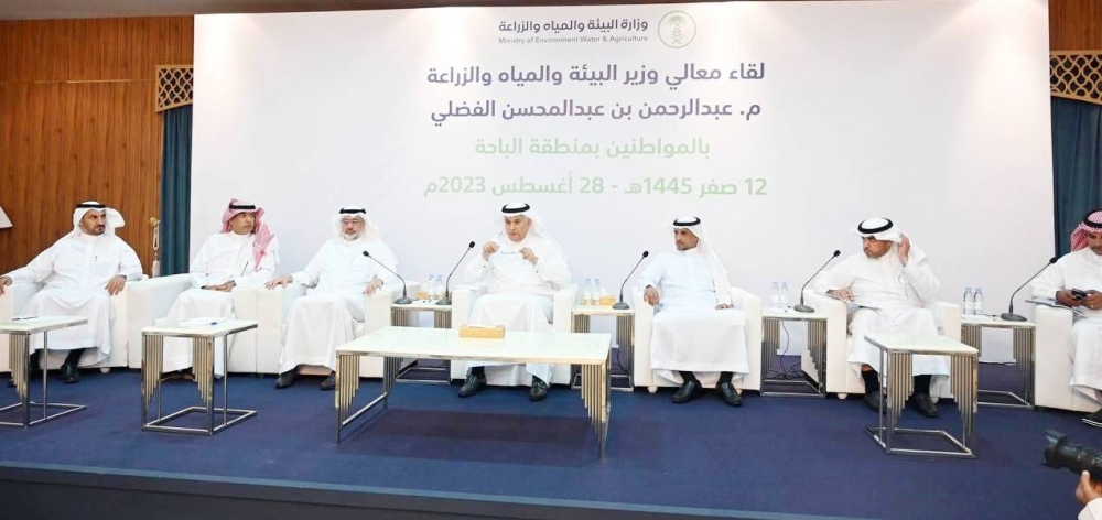 وأكد الوزير الفضلي، خلال لقائه بنخبة من مزارعي ومواطني منطقة الباحة، أن الملك سلمان وولي عهده يوجهان بلقاء المواطنين والاستماع لمطالبهم والإصغاء إلى شكاواهم، وعدّ اعتمادات الدولة لمشاريع المياه في عهد الملك سلمان غير مسبوقة، إذ تجاوزت اعتماداتها عشرات المليارات. وأوضح الفضلي أن مشاريع المياه والزراعة والبيئة تستغرق وقتاً لكي تصل الخدمة للمواطنين بحكم الإجراءات، وأنها ليست في متناول اليد بحيث يطلبها المواطن اليوم وتُلبى غداً، إذ هناك صعوبات وتحديات، ومنها عجز المقاول وانسحابه، وقال: نحن نجتهد بكل صلاحياتنا لإيصال المياه والخدمات البيئية والزراعية لكل مواطن ومقيم على أرض المملكة، ولفت إلى عزم وزارة البيئة والمياه والزراعة دعم وتمكين كل من وما يوفر الأمن الغذائي للوطن، مشيراً إلى أن الوزارة، طرحت في المنطقة ٢٠ فرصة استثمارية، فيما تعمل على استكمال مدينة البُن، تليها مدينة المانغو على مساحة ١٧ مليون متر مربع، ومدينة البرشومي على مساحة مليوني متر مربع، والمدينة النحلية، التي ستسهم في التدرج للاستغناء عن النحل المستورد، ومدينة الرمان.