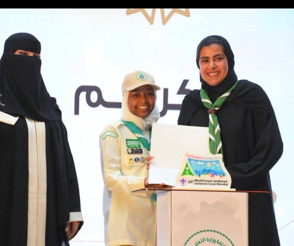 في ختام الحفل كرمت رئيسة لجنة فتيات الكشافة بجمعية الكشافة السعودية 13 طالبة من فتيات الكشافة كما كرمت إدارة نشاط الطالبات والقائدة الكشفية المشرفة على الطالبات ريم القحطاني.