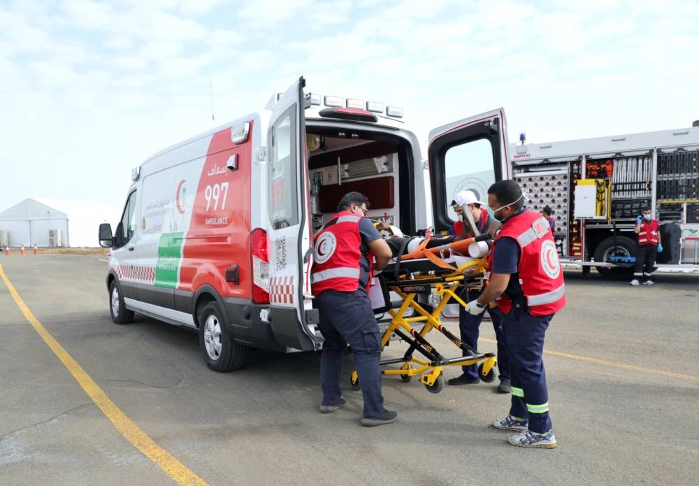 فرقة إسعافية تباشر إحدى الحالات في جدة. (عكاظ)