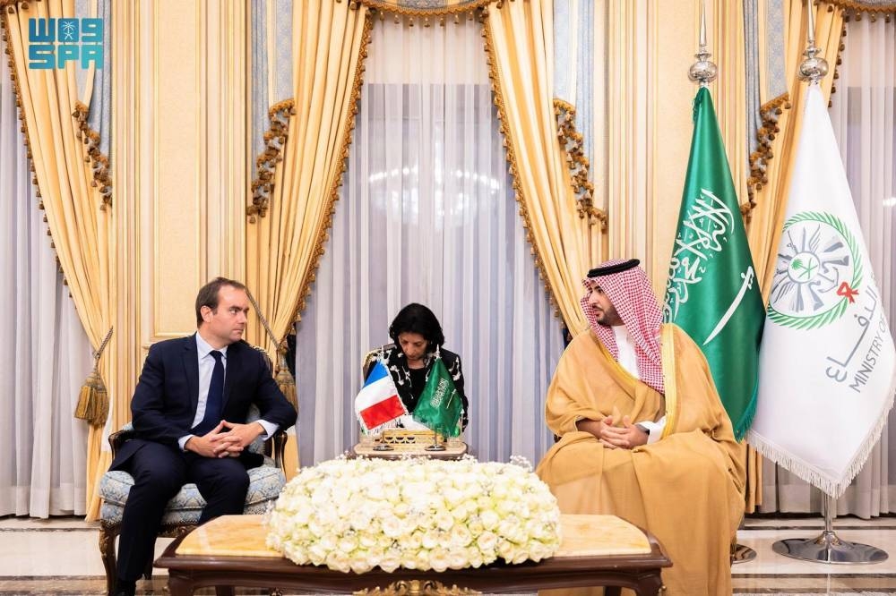 استقبل وزير الدفاع الأمير خالد بن سلمان بن عبدالعزيز، في مكتبه بالرياض وزير القوات المسلحة لدى الجمهورية الفرنسية سيباستيان ليكورنو.
