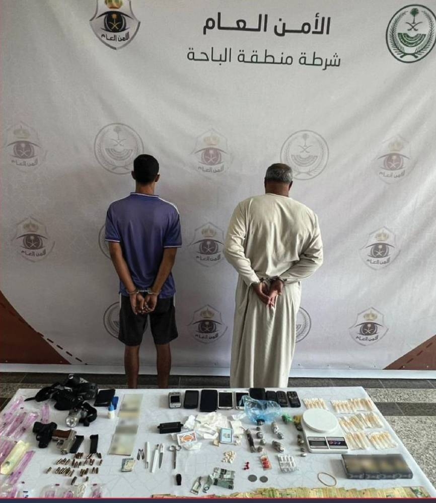 قبضت شرطة منطقة الباحة على مواطنين لاتخاذهما منزلًا وكرًا لترويج مادتي الحشيش والإمفيتامين المخدرتين وأقراص خاضعة لتنظيم التداول الطبي، وضُبطت بحوزتهما هواتف متنقلة وسلاحان ناريان ومبلغ مالي، وجرى إيقافهما واتخاذ الإجراءات النظامية بحقهما، وإحالتهما إلى جهة الاختصاص.