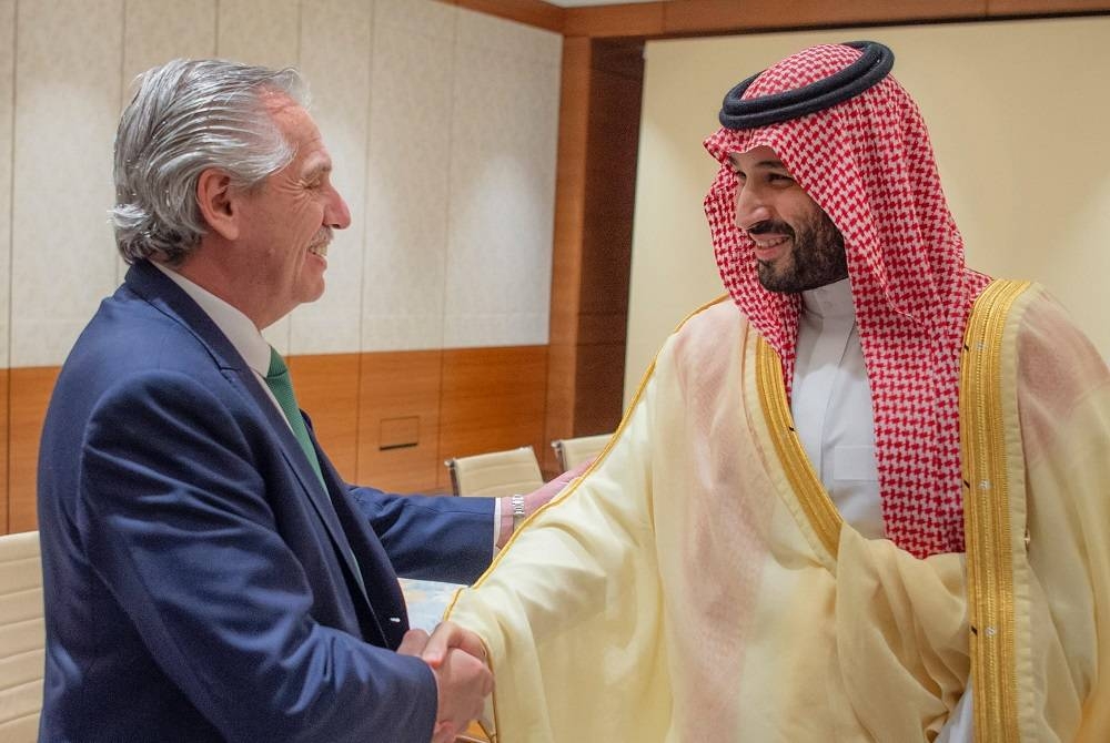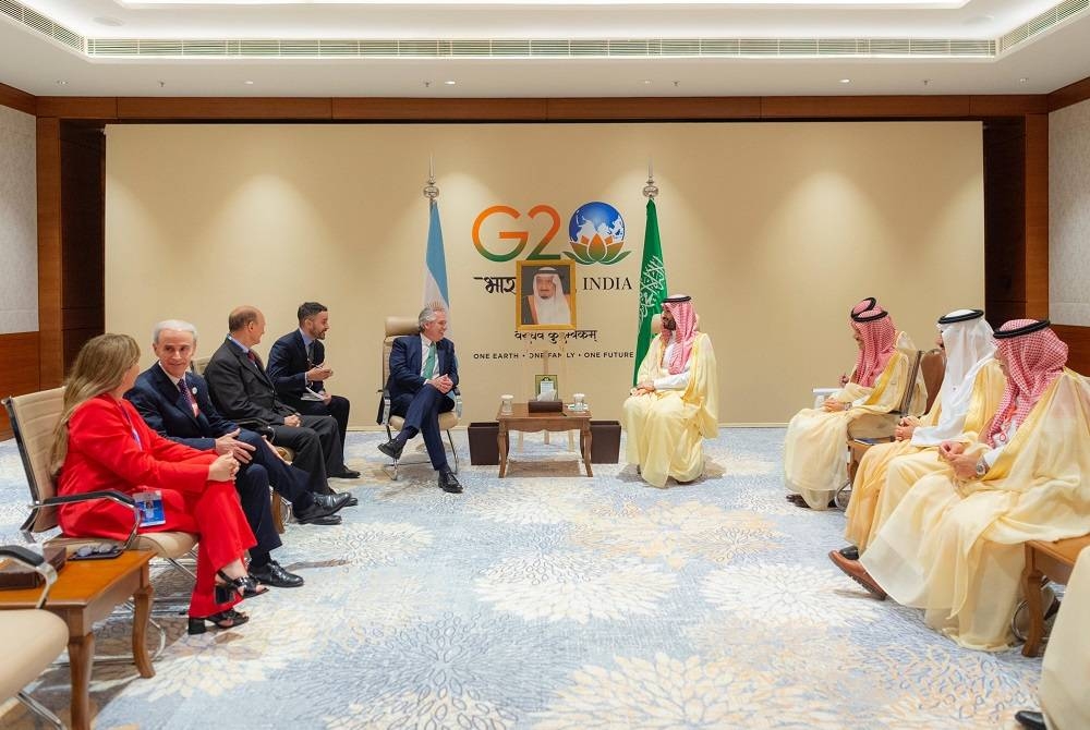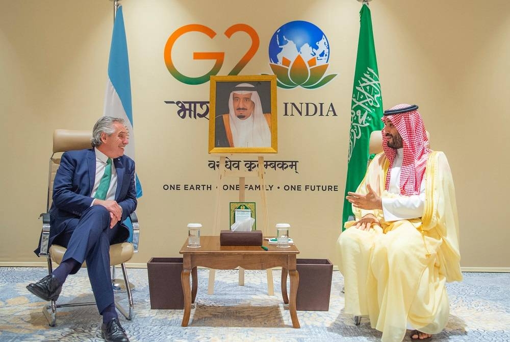 التقى ولي العهد رئيس مجلس الوزراء رئيس وفد السعودية المشارك في قمة قادة دول مجموعة العشرين الأمير محمد بن سلمان بن عبدالعزيز آل سعود، في مدينة نيودلهي بجمهورية الهند، اليوم (الأحد)، رئيس جمهورية الأرجنتين ألبرتو فرنانديز.