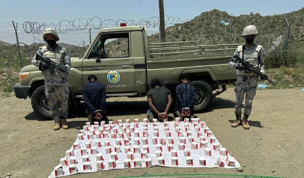 قبضت الدوريات البرية لحرس الحدود في قطاع العارضة بمنطقة جازان على ثلاثة مخالفين لنظام أمن الحدود لتهريبهم 69,000 قرص خاضع لتنظيم التداول الطبي، وجرى استكمال الإجراءات النظامية الأولية، وتسليمهم والمضبوطات لجهة الاختصاص.