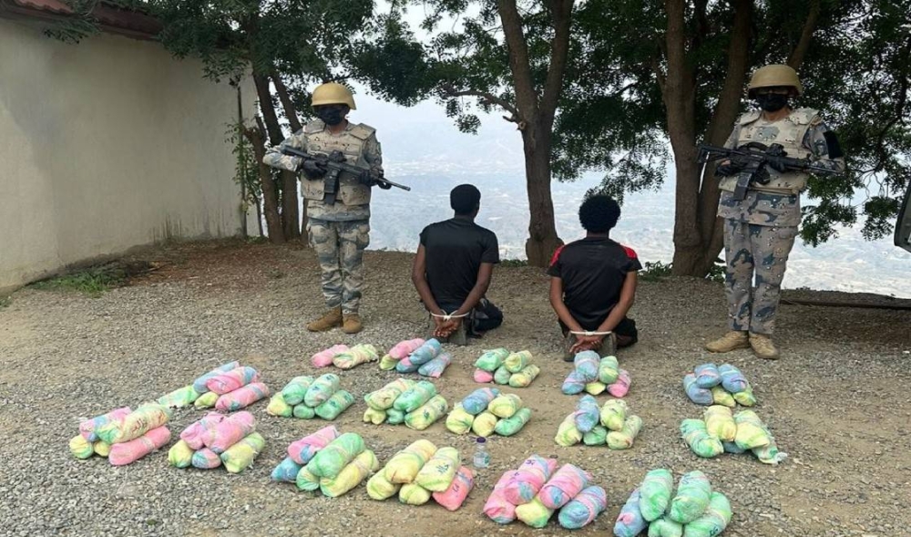 قبضت الدوريات البرية لحرس الحدود في قطاع الحرث بمنطقة جازان على مخالفَين لنظام أمن الحدود من الجنسية الإرتيرية، لتهريبهما 40 كيلوغراماً من نبات القات المخدر، وجرى استكمال الإجراءات النظامية الأولية بحقهما، وتسليمهما والمضبوطات لجهة الاختصاص.