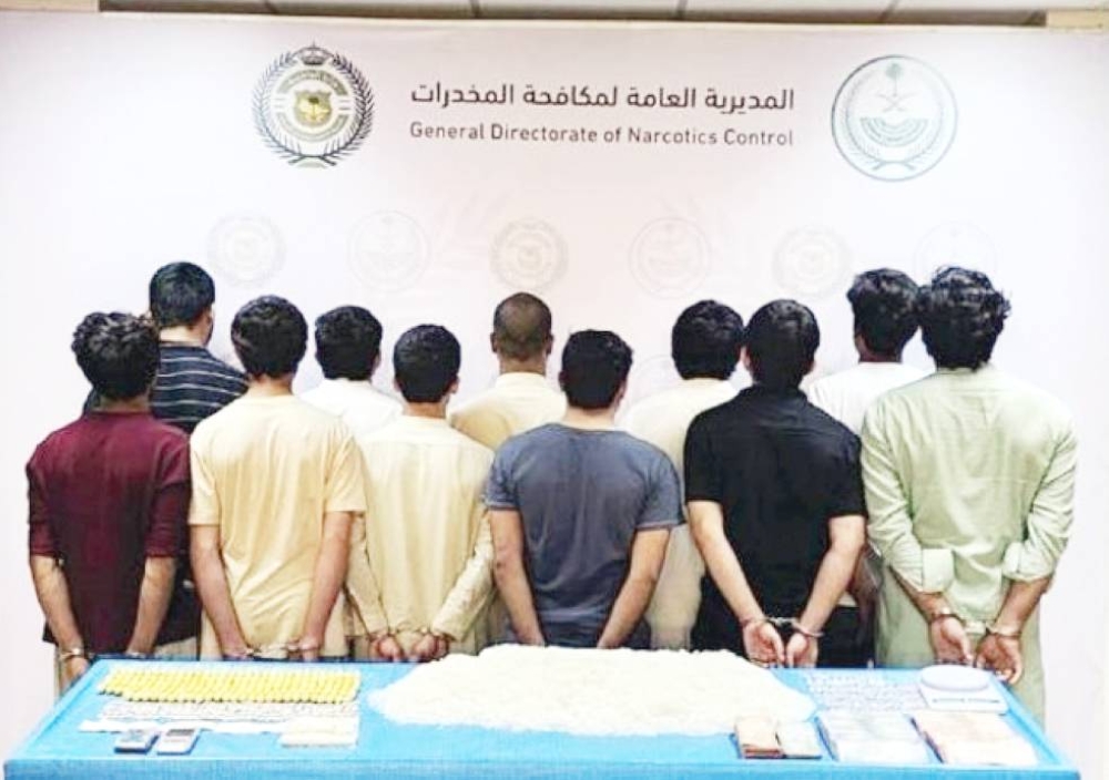 من جهة ثانية، أحبطت المديرية العامة لمكافحة المخدرات ترويج 8.6 كيلوغرام من مادة الميثامفيتامين المخدر «الشبو» و1.3 كيلوغرام من مادة الهيروين المخدر، وقبضت على مروجيها، وهم 11 مقيماً من الجنسية الباكستانية بمحافظة جدة، وجرى إيقافهم واتخاذ الإجراءات النظامية بحقهم، وإحالتهم إلى النيابة. وتهيب الجهات الأمنية بالإبلاغ عن كل ما يتوافر من معلومات لدى المواطنين والمقيمين عن أي نشاطات ذات صلة بتهريب أو ترويج المخدرات.