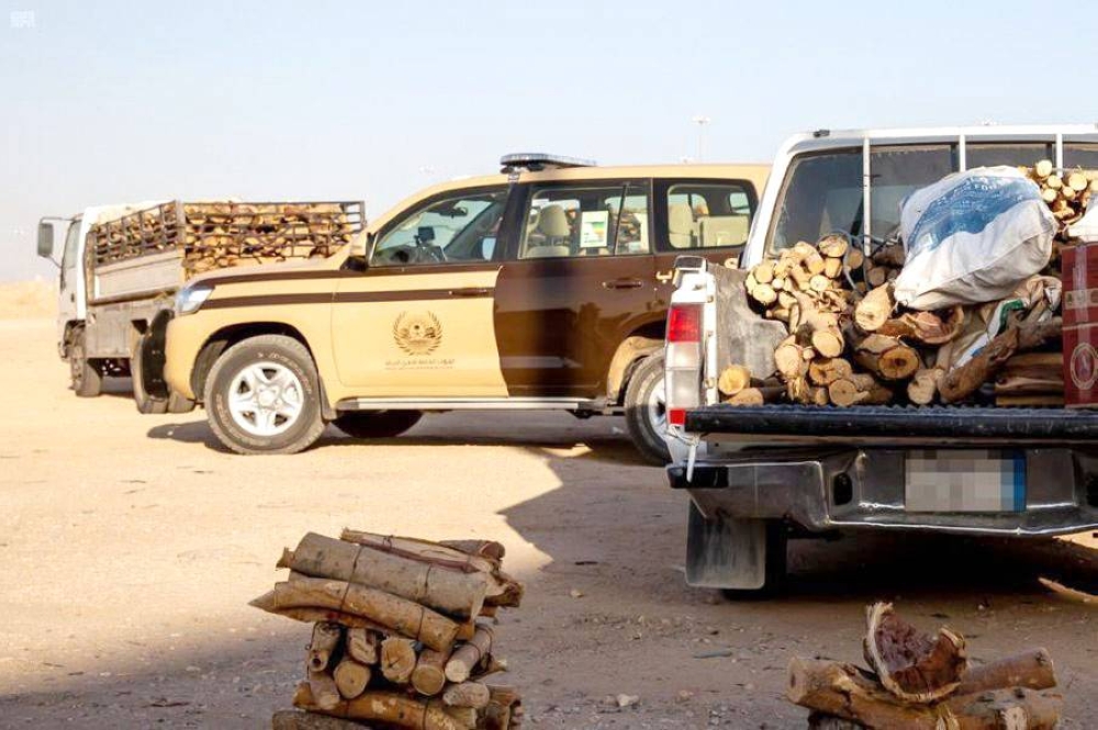 القوات الخاصة للأمن البيئي تباشر موقعاً لبيع الحطب دون تصريح. (واس)
