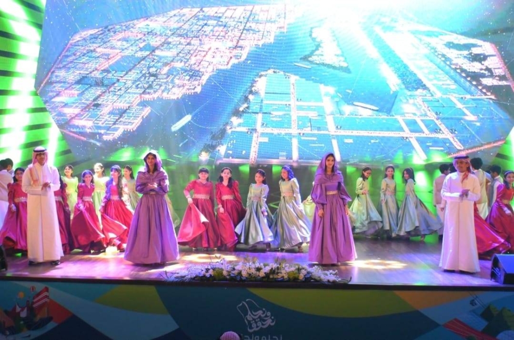 وفي الختام شاهد محافظ جدة والحضور استعراضاً فنياً مسرحياً بعنوان «أخبروا الأرض.. أنّا نحلم ونحقق»، يحكي مشاعر منسوبي ومنسوبات المجتمع التعليمي بمناسبة اليوم الوطني.