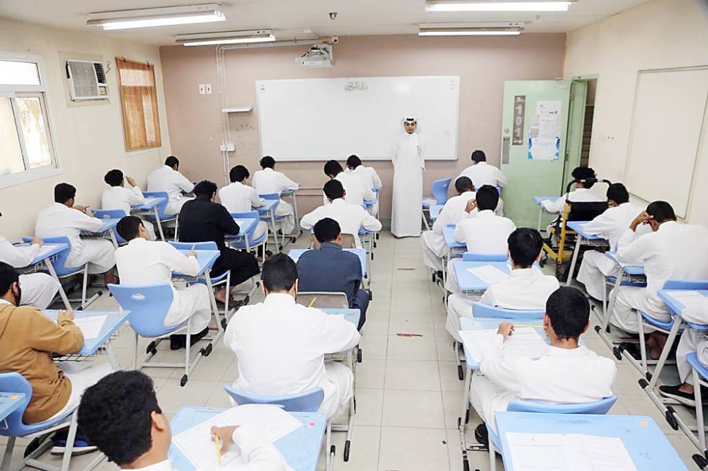 طلاب يؤدون اختباراتهم بمدرسة في جدة العام الماضي. (أرشيف «عكاظ»)