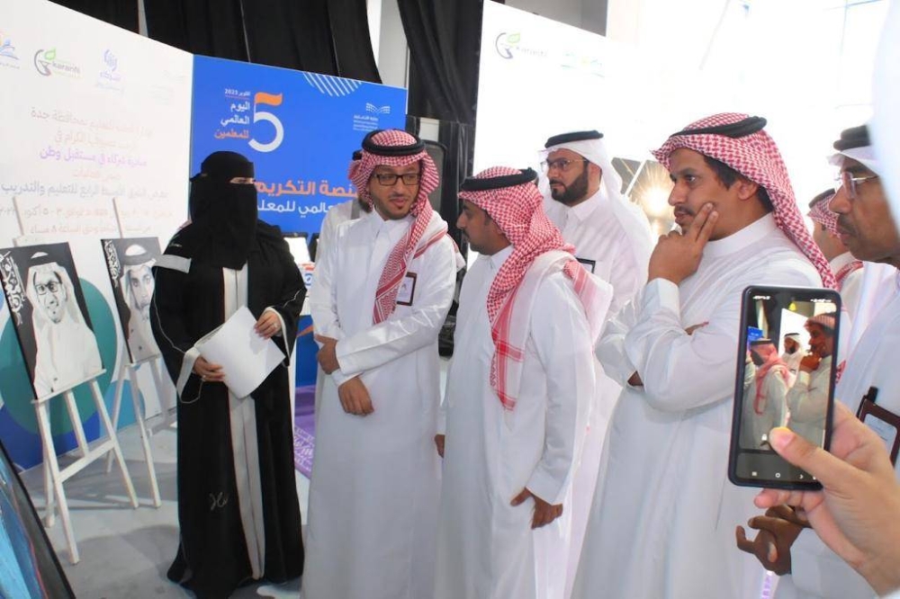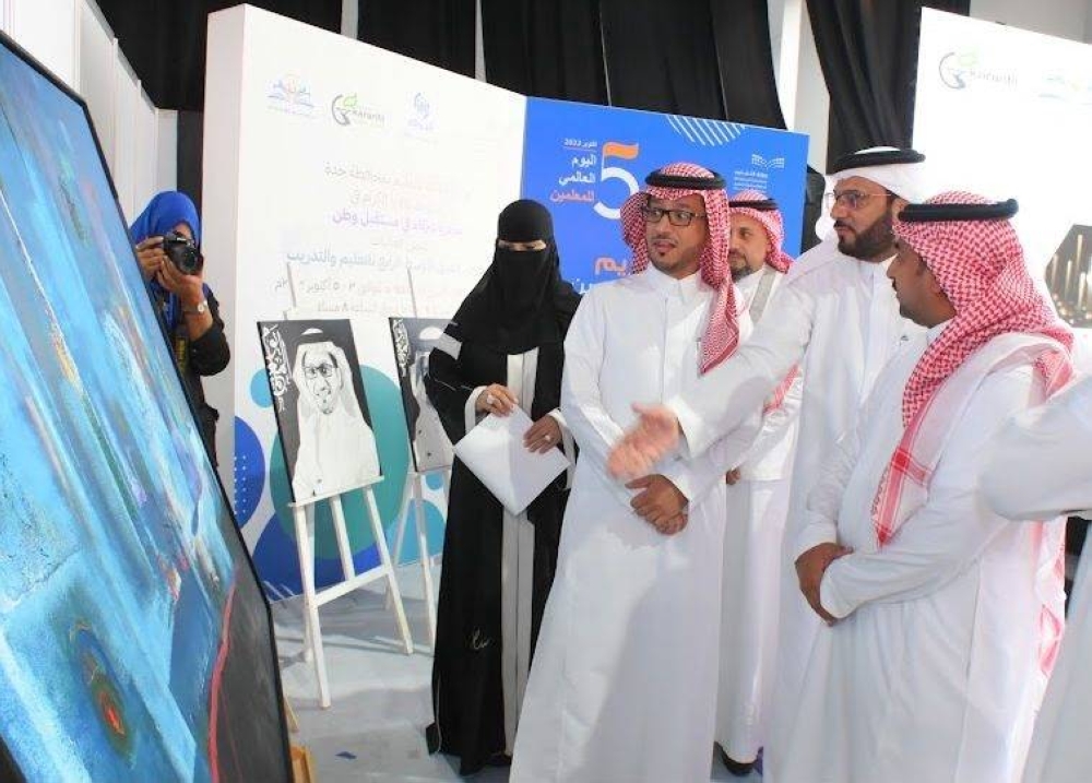 ضمن فعاليات ومناشط تكريم المعلم في يومه العالمي، استوقفت لوحة «السعودية خط أحمر» للفنان السعودي محمد العبدلي، وكلاء وزارة التعليم صباح أمس الأول في جناح «تعليم جدة» بمعرض الشرق الأوسط للتعليم والتدريب 2023، الذي انطلق أخيراً في جدة، بحضور المدير العام للتعليم بمحافظة جدة منال مبارك اللهيبي، والمساعد التعليمي طواشي الكناني، والمساعد للخدمات المساندة وسام حابس، وعدد من قيادات التعليم ومديري المكاتب.
