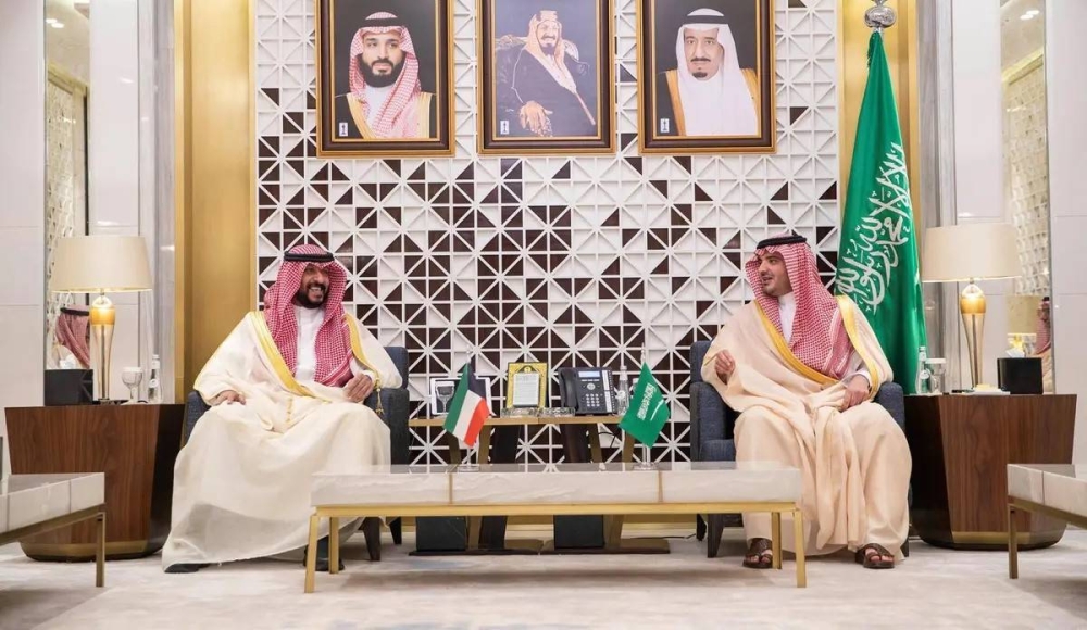 استقبل وزير الداخلية الأمير عبدالعزيز بن سعود بن نايف بن عبدالعزيز، في مكتبه بالوزارة، اليوم (الخميس)، النائب الأول لرئيس مجلس الوزراء وزير الداخلية بدولة الكويت الشيخ طلال خالد الأحمد الصباح.