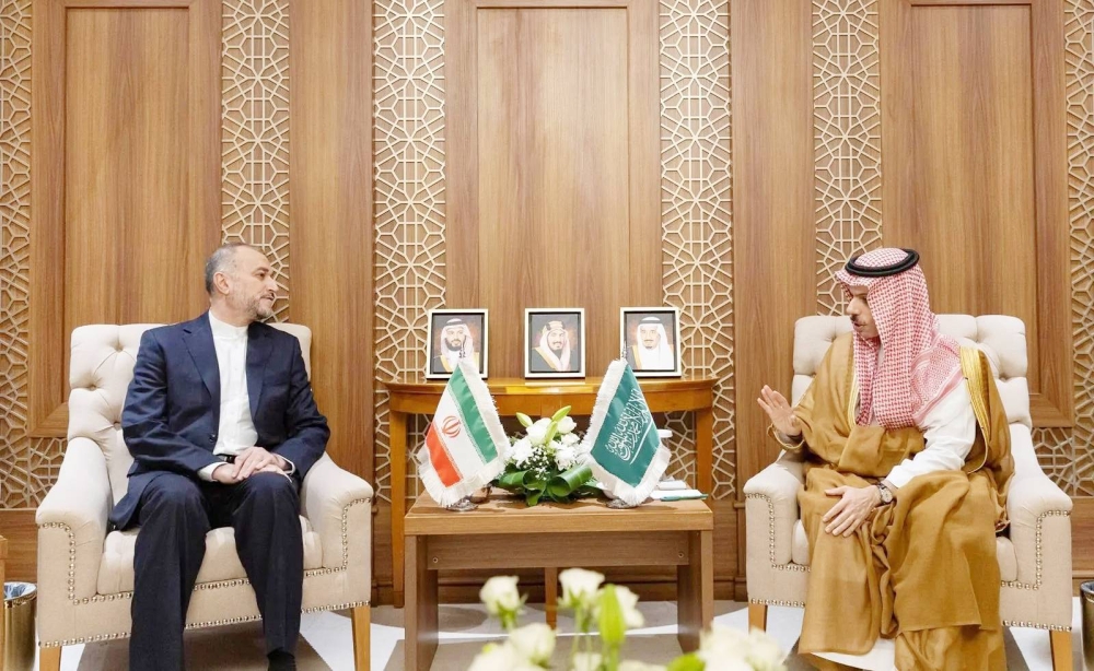 وزير الخارجية ملتقياً نظيره الإيراني أمس في جدة. (واس)