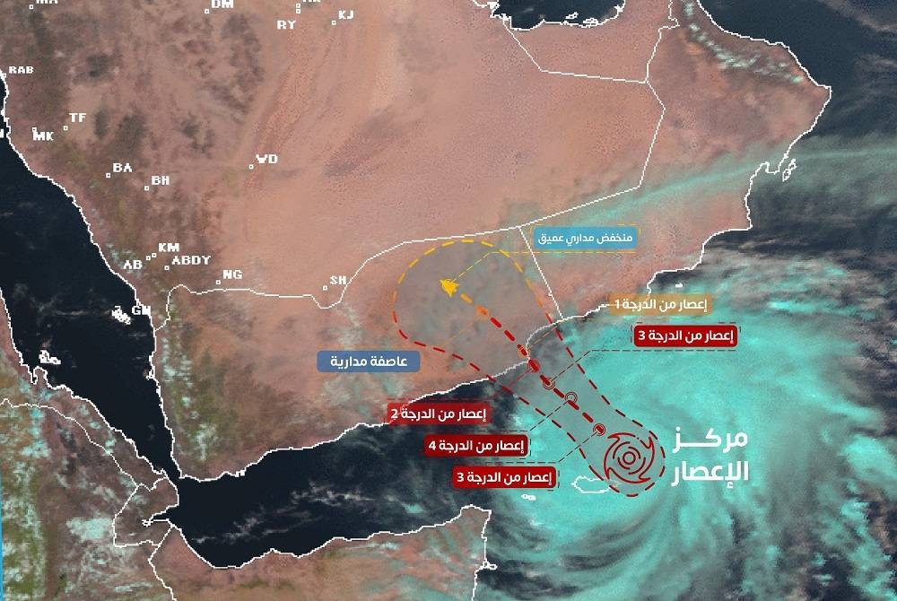 وابتداء من يوم غدٍ (الاثنين) حتى الأربعاء القادم، ستتأثر أجزاء من سلطنة عمان والجمهورية اليمنية بالحالة المدارية وفقاً للتالي: غداً (الاثنين) ستُصنّف بأنها إعصار مداري من الدرجة الثالثة بسرعة رياح بين 178 - 208 كيلومترات/ساعة عند الساعة 5:30 فجراً، ثم إعصار مداري من الدرجة الثانية وسرعة الرياح 154 - 177 كيلومتراً في الساعة حتى الساعة 5:30 عصراً.