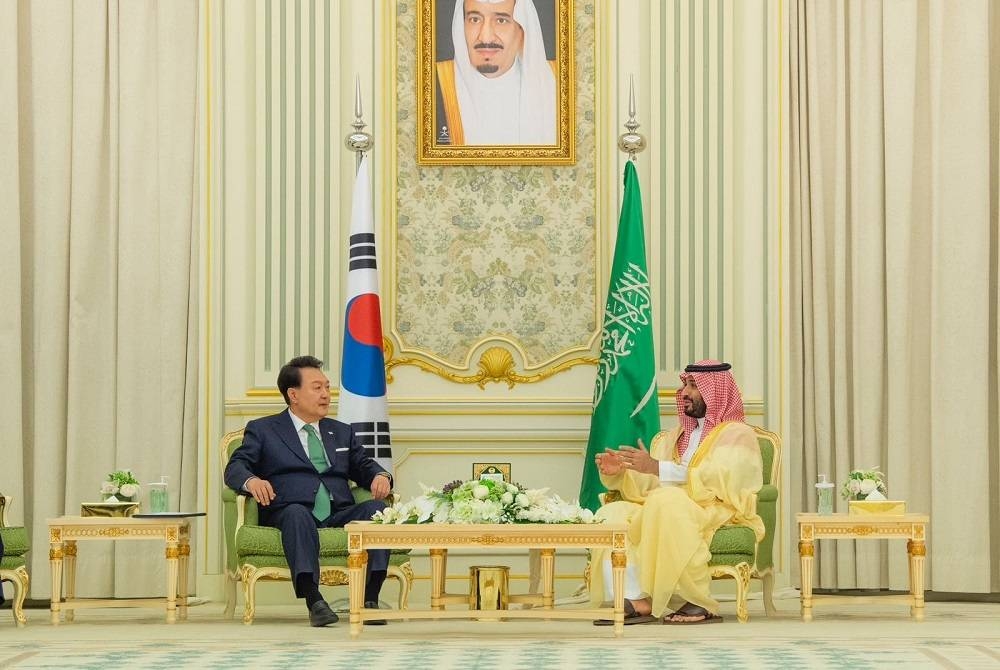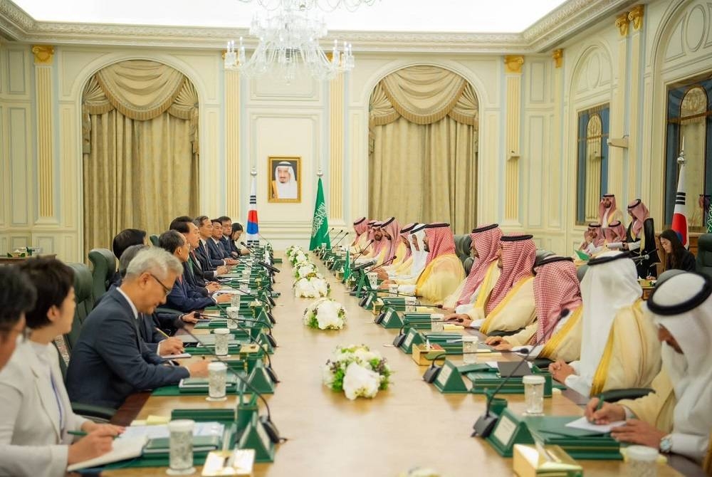 وعقد ولي العهد والرئيس الكوري اجتماعا موسعاً وجلسة مباحثات رسمية، رحب الأمير محمد بن سلمان في بدايتها برئيس كوريا في السعودية، متمنياً له ومرافقيه طيب الإقامة، فيما عبر الرئيس يون سوك يول عن شكره وتقديره لما لقيه والوفد المرافق من كرم الضيافة وحسن الاستقبال.