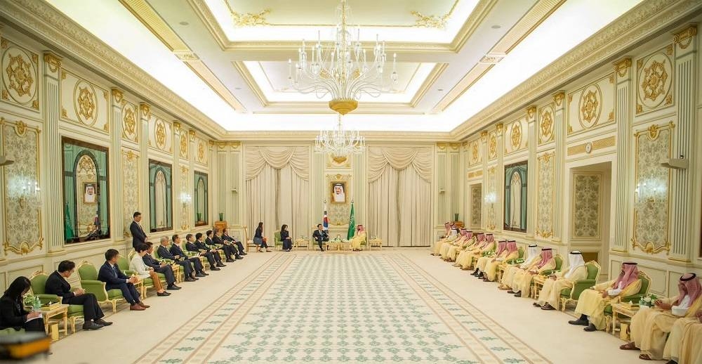 حضر جلسة الاجتماع وجلسة المباحثات الرسمية، وزير الطاقة الأمير عبدالعزيز بن سلمان بن عبدالعزيز، ووزير الدولة عضو مجلس الوزراء الأمير تركي بن محمد بن فهد بن عبدالعزيز، ووزير الرياضة الأمير عبدالعزيز بن تركي الفيصل، ووزير الداخلية الأمير عبدالعزيز بن سعود بن نايف بن عبدالعزيز، ووزير الحرس الوطني الأمير عبدالله بن بندر بن عبدالعزيز، ووزير الخارجية الأمير فيصل بن فرحان بن عبدالله، ووزير الثقافة الأمير بدر بن عبدالله بن فرحان، ووزير الدولة عضو مجلس الوزراء مستشار الأمن الوطني الدكتور مساعد بن محمد العيبان، ووزير التجارة الدكتور ماجد بن عبدالله القصبي، ووزير الاستثمار المهندس خالد بن عبدالعزيز الفالح الوزير المرافق، ووزير الاتصالات وتقنية المعلومات المهندس عبدالله بن عامر السواحه، ووزير الصناعة والثروة المعدنية المهندس بندر بن إبراهيم الخريف، ووزير الاقتصاد والتخطيط فيصل بن فاضل الإبراهيم، وسفير خادم الحرمين الشريفين لدى كوريا سامي السدحان.