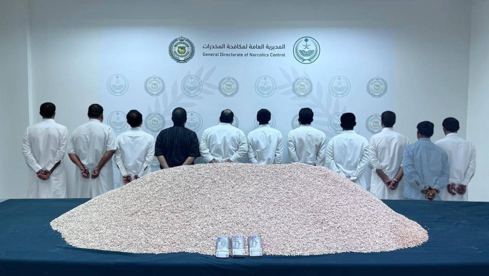صرح المتحدث الرسمي للمديرية العامة لمكافحة المخدرات الرائد مروان الحازمي، بأن المتابعة الأمنية لنشاطات الشبكات الإجرامية التي تمتهن تهريب المواد المخدرة إلى المملكة وترويجها فيها أسفرت عن ضبط 3,860,000 قرص من مادة الإمفيتامين المخدر بمنطقة الرياض، والقبض على المتورطين فيها وعددهم 11 متهمًا، وهم 7 مقيمين من الجنسية السورية، ومقيم من الجنسية النيبالية، و3 مواطنين، في مناطق مكة المكرمة والرياض والقصيم وحائل والجوف.