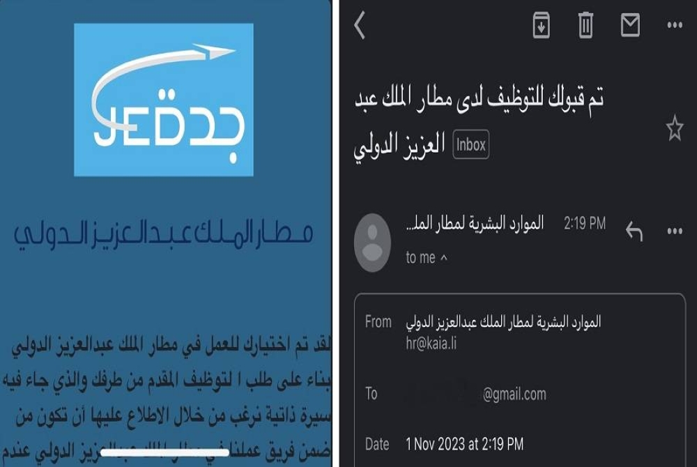 حذّر مطار الملك عبدالعزيز الدولي، من حسابات وهمية دأبت على إرسال رسائل بريد إلكتروني إلى العديد من الأشخاص، تفيد بقبولهم في وظائف مختلفة.