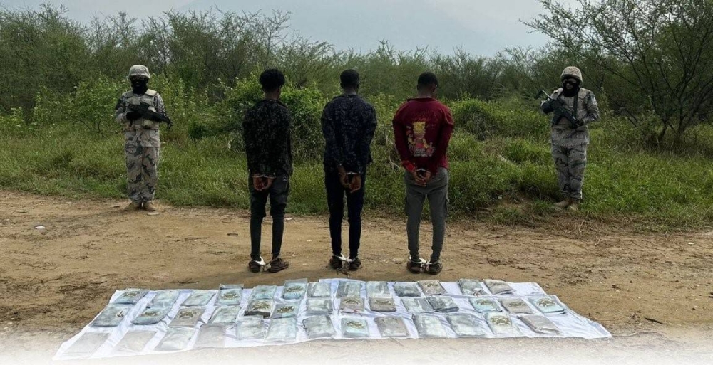 قبضت الدوريات البرية لحرس الحدود في قطاع العارضة بمنطقة جازان على 3 مخالفين لنظام أمن الحدود من الجنسية الإثيوبية، لمحاولتهم تهريب 43 كيلوغرامًا من مادة الحشيش المخدر، وجرى استكمال الإجراءات النظامية الأولية بحقهم، وتسليمهم والمضبوطات لجهة الاختصاص.