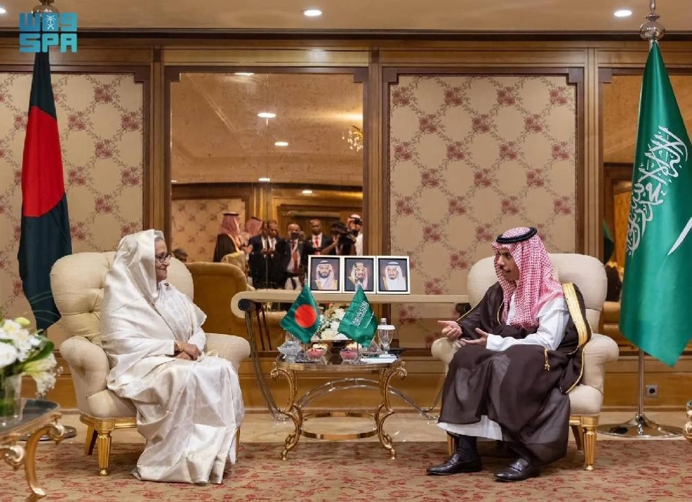 وفي بداية اللقاء، نقل وزير الخارجية تحيات وتقدير خادم الحرمين الشريفين الملك سلمان بن عبدالعزيز آل سعود، وولي العهد رئيس مجلس الوزراء الأمير محمد بن سلمان بن عبدالعزيز، لدولتها، وأصدق تمنياتهما لجمهورية بنغلاديش وشعبها الشقيق بدوام التقدم والرخاء.