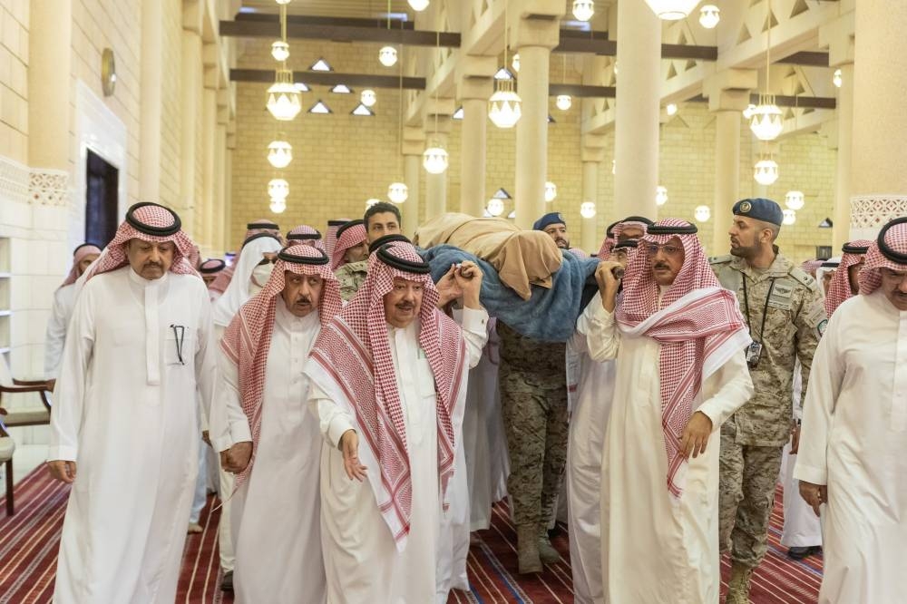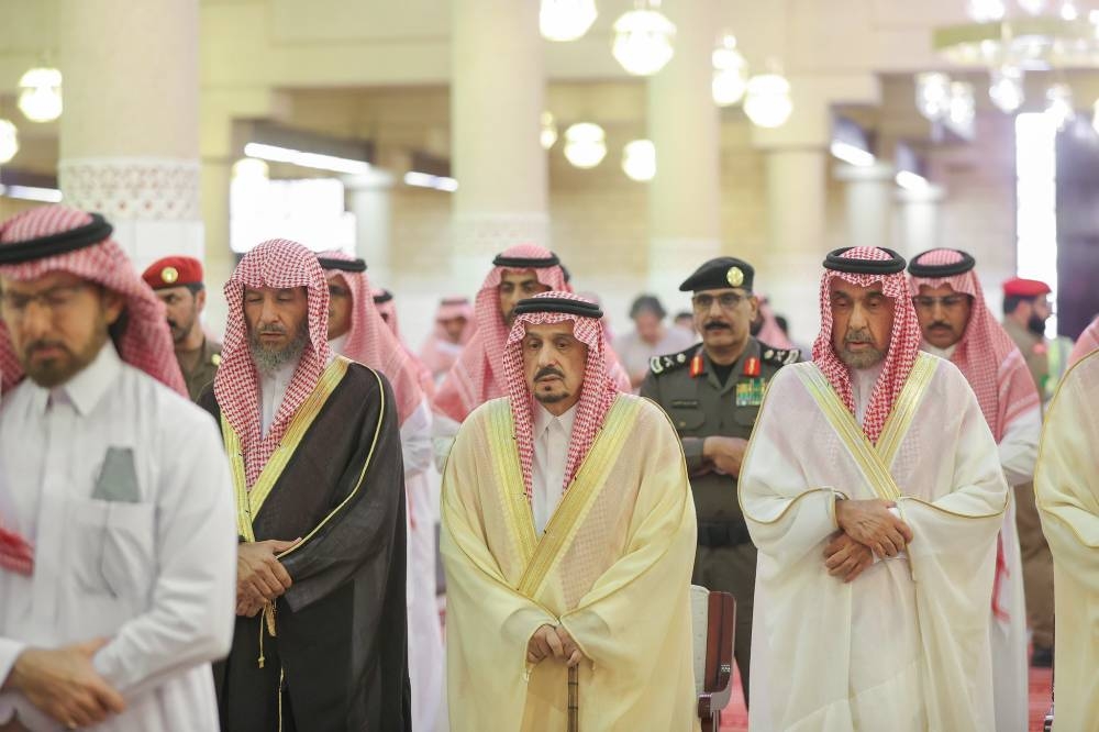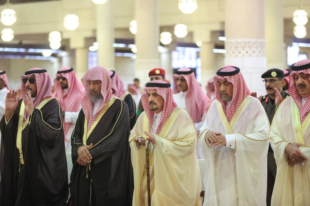 وأدى الصلاة مع أمير الرياض الأمير مشعل بن سعود بن عبدالعزيز، والأمير منصور بن سعود بن عبدالعزيز، والأمير خالد بن سعد بن عبدالعزيز، والأمير متعب بن عبدالله بن عبدالعزيز، والأمير فيصل بن خالد بن عبدالعزيز مستشار خادم الحرمين الشريفين، والأمير فيصل بن عبدالله بن محمد، والأمير سطام بن سعود بن عبدالعزيز، والأمير نواف بن محمد بن عبدالله، والأمير فيصل بن محمد بن سعود بن عبدالعزيز، والأمير تركي بن سعود بن محمد، والأمير متعب بن ثنيان بن محمد، والأمير تركي بن محمد بن عبدالله، والأمير حمود بن سعود بن عبدالعزيز، والأمير مصعب بن سعود بن عبدالعزيز، والأمير يوسف بن سعود بن عبدالعزيز، والأمير حسام بن سعود بن عبدالعزيز أمير منطقة الباحة، والأمير سلمان بن سعود بن عبدالعزيز، والأمير فيصل بن تركي بن فيصل بن تركي الأول، والأمير أحمد بن عبدالله بن عبدالرحمن، وأمير منطقة القصيم فيصل بن مشعل بن سعود بن عبدالعزيز، والفريق الركن تركي بن بندر بن عبدالعزيز قائد القوات الجوية الملكية السعودية، وأمير منطقة المدينة المنورة الأمير فيصل بن سلمان بن عبدالعزيز، والأمير محمد بن فيصل بن بندر بن عبدالعزيز، والأمير سعود بن نهار بن سعود محافظ الطائف.