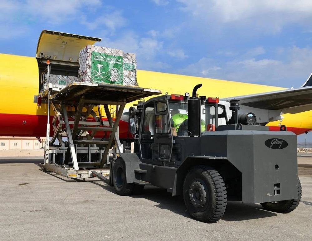 وصلت إلى مطار العريش الدولي بجمهورية مصر العربية اليوم الطائرة الإغاثية السعودية الخامسة، تحمل على متنها مساعدات إغاثية متنوعة شملت مواد غذائية وإيوائية بوزن إجمالي يبلغ 35 طناً، تمهيداً لنقلها إلى المتضررين داخل قطاع غزة، وذلك ضمن الحملة الشعبية لإغاثة الشعب الفلسطيني الشقيق في قطاع غزة، والتي وجه بها خادم الحرمين الشريفين الملك سلمان بن عبدالعزيز آل سعود وصاحب السمو الملكي الأمير محمد بن سلمان بن عبدالعزيز ولي العهد رئيس مجلس الوزراء ـ حفظهما الله.